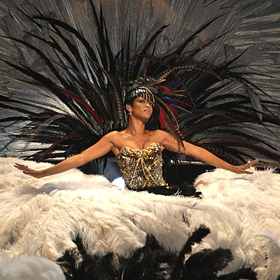 During her rendition of Madonna's "Vogue"at Fashion Rocks in 2008, she is drowning in feathers!